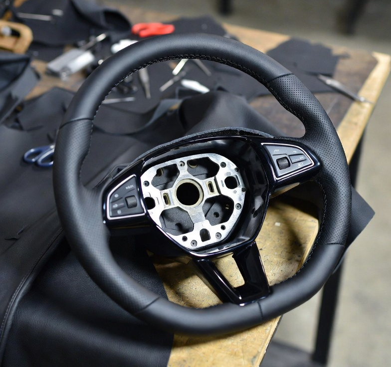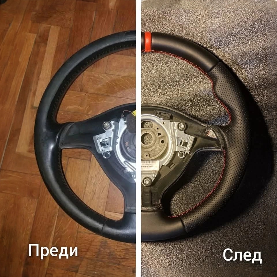 Ръчно тапициране на волани с висококачествени материали - автомобилна кожа, MB-Tex и алкантара.